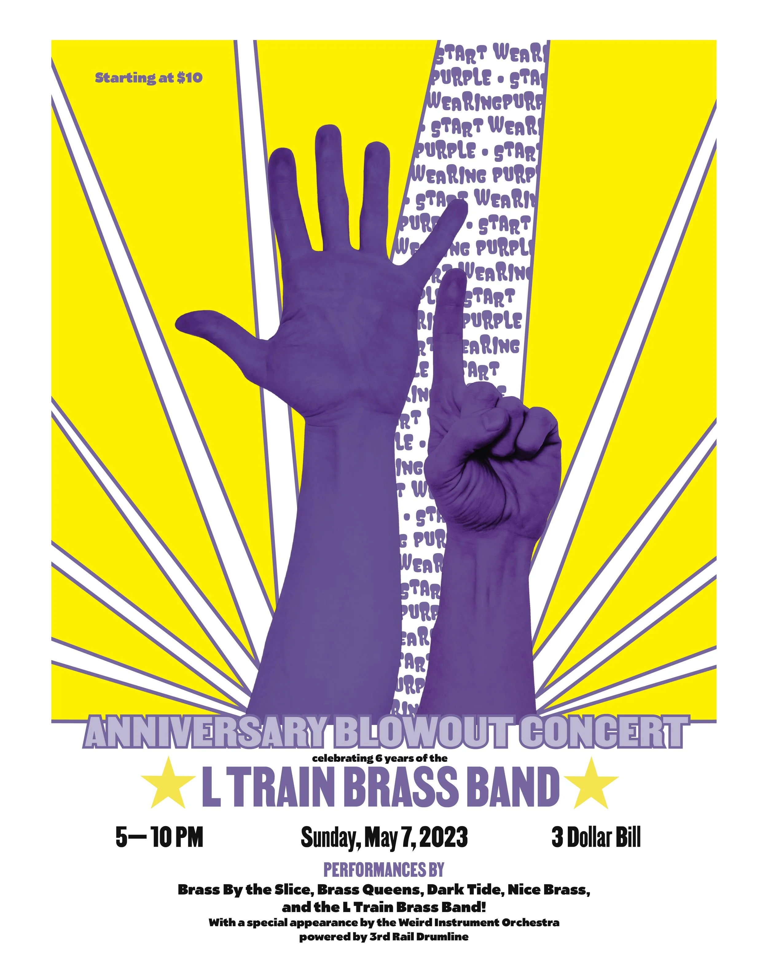 Join us for a night of dancing and singing to the brassiest lineup— featuring L Train Brass and sibling bands from our #BrassLove family. Performances by Brass by the Slice, Brass Queens, Dark Tide, Nice Brass, and the L Train Brass Band! Special appearance by Weird Instrument Orchestra powered by 3rd Rail Drumline.